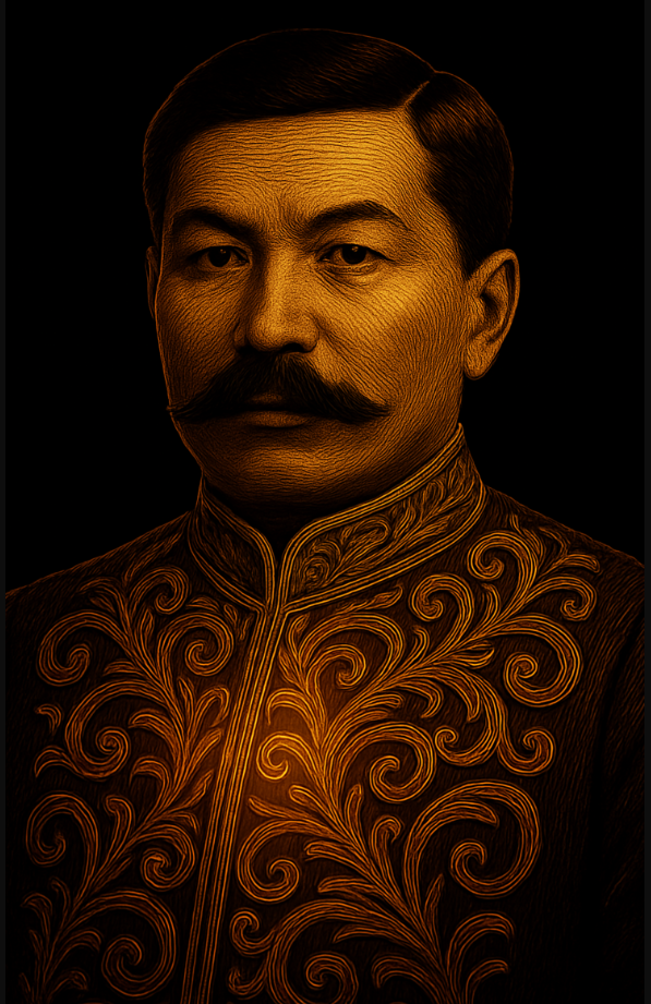 2. Көзқарас пен Мұрт: Тұлғаның көзқарасы – терең, салмақты, алға қадалған. Бұл – елдің ертеңіне деген зор жауапкершілікті сезінген, әрбір қадамын ұлттың пайдасына өлшеген көсемнің көзқарасы. Қалың мұрт – қазақылықтың, ерліктің және дала ақсүйегінің қадір-қасиетінің белгісі.